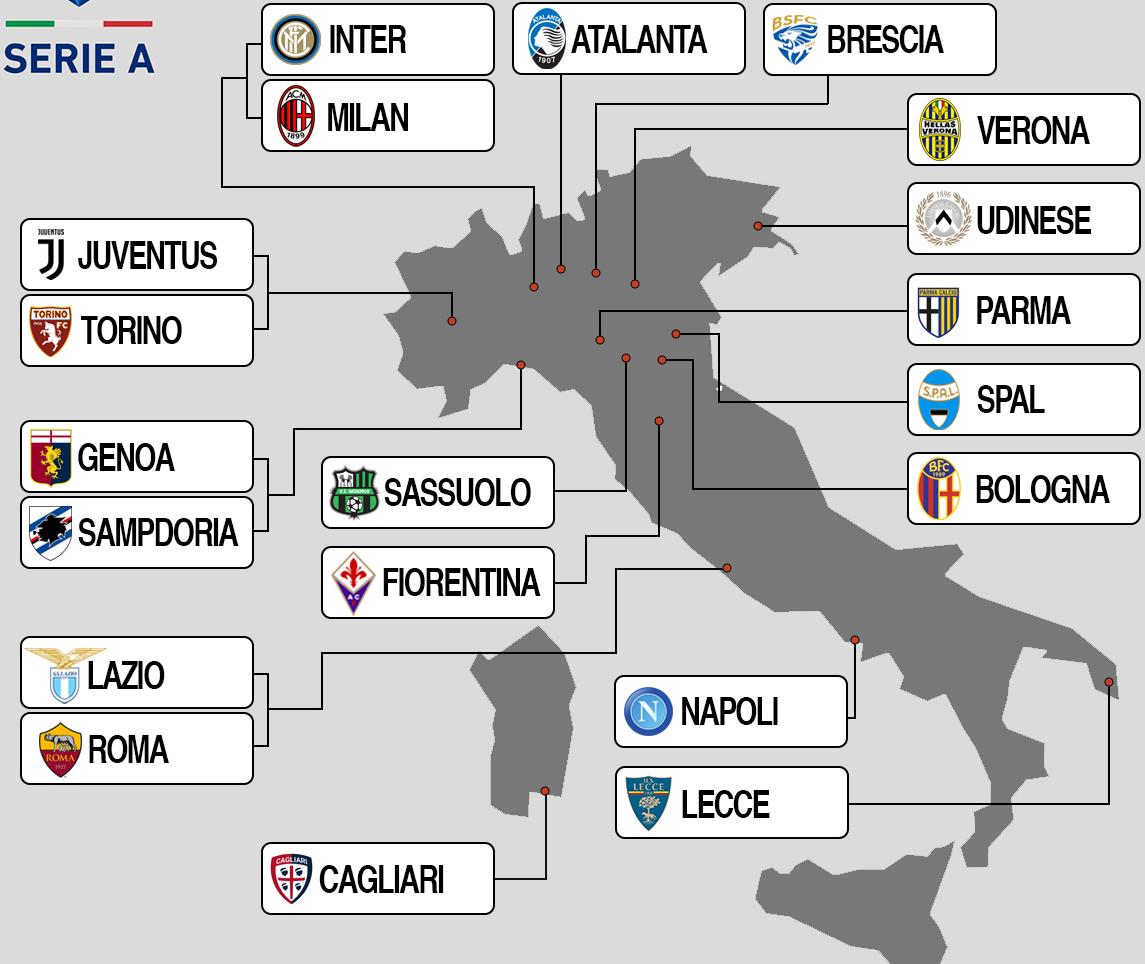O Stadio San Siro, oficialmente chamado Stadio Guiseppe Meazza, foi um projeto do ex-presidente do AC Milan, Piero Pirelli. Nas duas primeiras décadas do século XX, o Milan já tinha ocupado vários terrenos, e no início da década de 1920 jogava num terreno no Viale Lombardia, como é mencionado no mapa do estádio italiano. O Stadio Olimpico foi construído para ser a peça central do complexo desportivo Foro Italia, um projecto iniciado pelo regime de Mussolini. A construção começou em 1928 e uma primeira fase tinha sido concluída em 1932. As obras da segunda camada foram interrompidas devido ao início da Segunda Guerra Mundial e só foram retomadas em dezembro de 1950. O Stadio San Paolo foi construído para dar a Napoli um lar permanente depois de sua antiga casa Stadio Partenopeo ter sido destruída na Segunda Guerra Mundial por ataques aéreos.